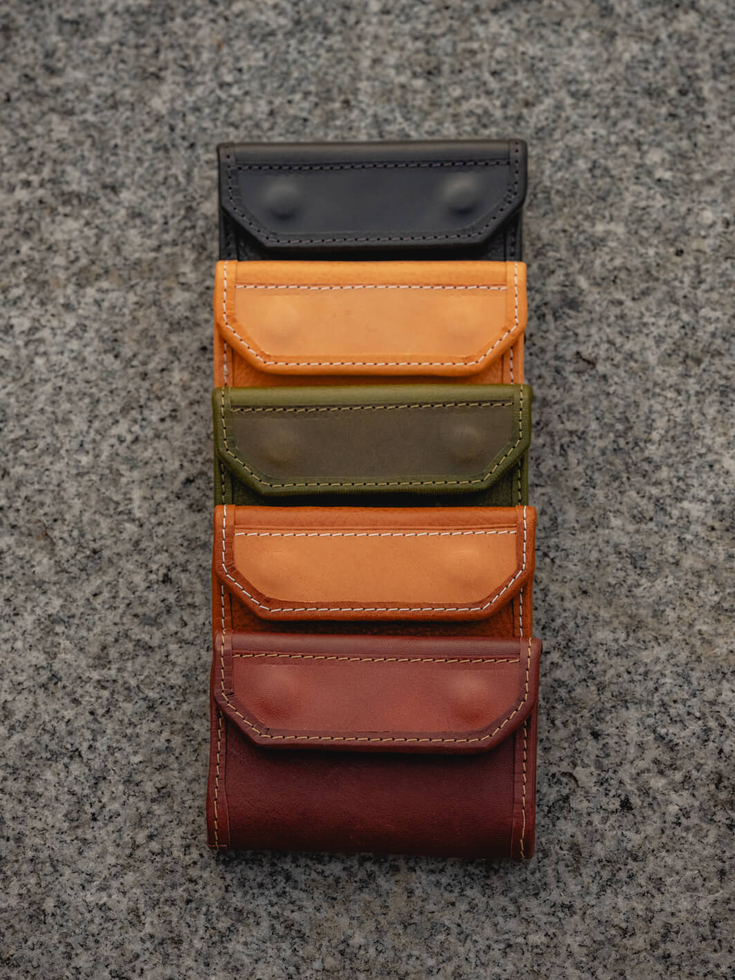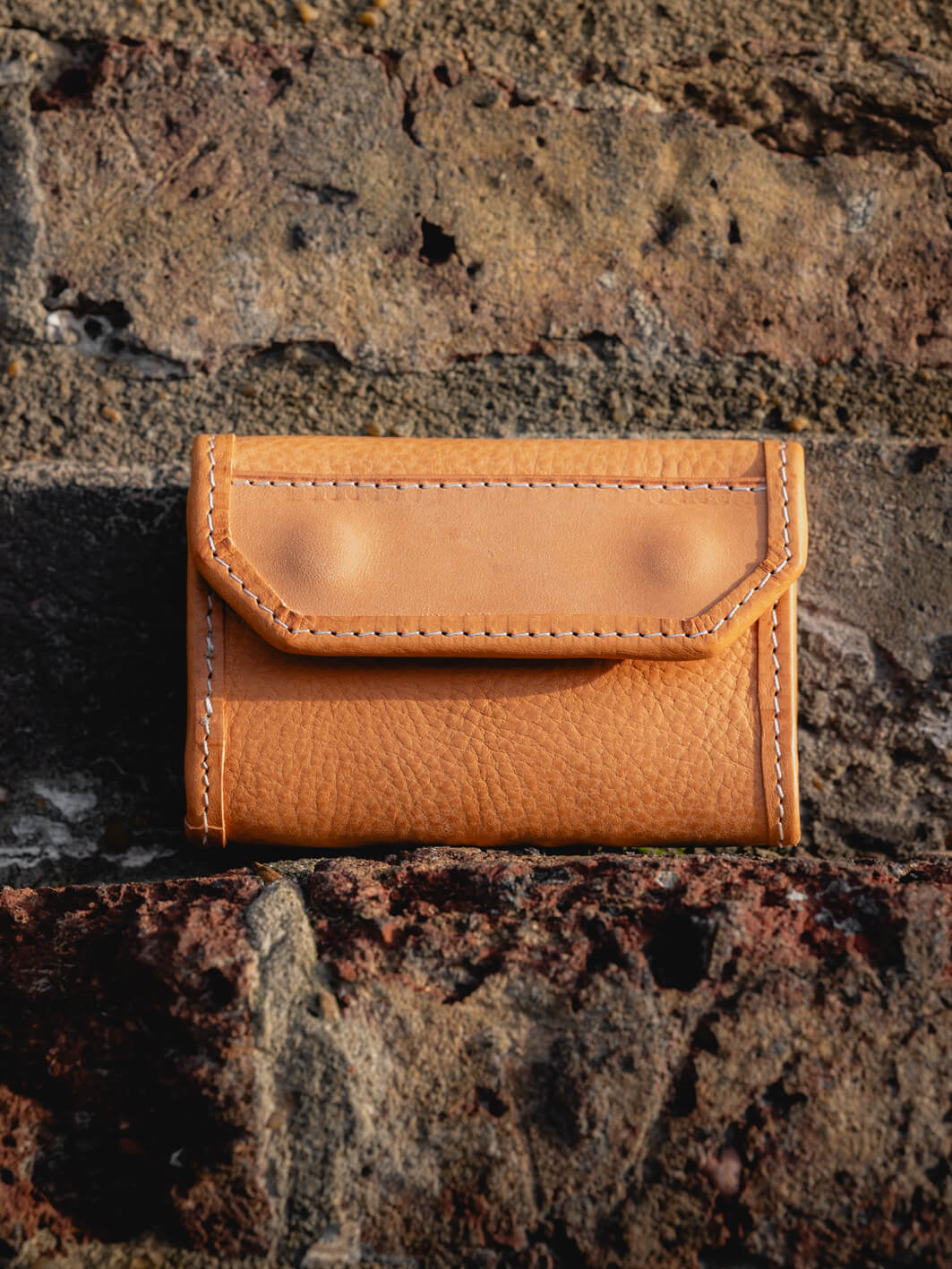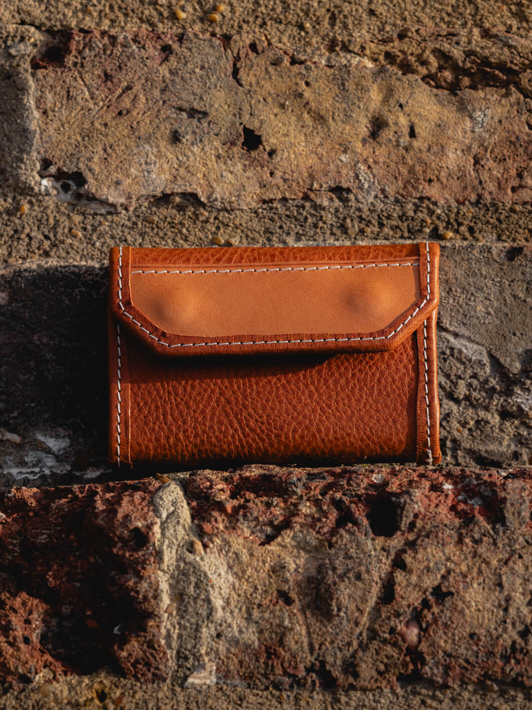 Our Mornington Bifold Wallet is meticulously crafted from premium soft-grain tumbled veg-tan leather. Four card slots will accommodate plenty of cards. Edge binding around the full wallet adds durability. A secure brass double snap closure adds an extra layer of protection. Whether for cash or cards, this compact design offers Winning security and sophistication for the discerning individual.